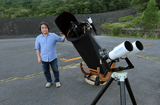 自作のSKY90双眼望遠鏡と、自作の45cm大型ドブソニアンです。
